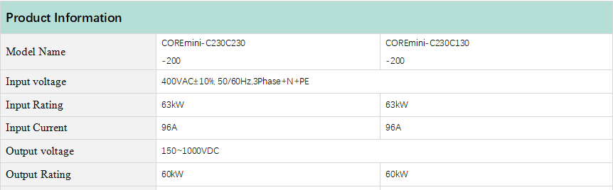 The Coremini  60kW Fast DC electric vehicle charger features a sleek, contemporary design with an intuitive user interface. Its modular construction ensures easy operation and simplified maintenance. Equipped with advanced functionality, it supports intelligent multi-charge operations and dynamic power distribution. It offers high-efficiency power modules, with a peak efficiency of ≥95% for the entire unit. Ideal for use in commercial plazas, charging stations, office buildings, and similar locations